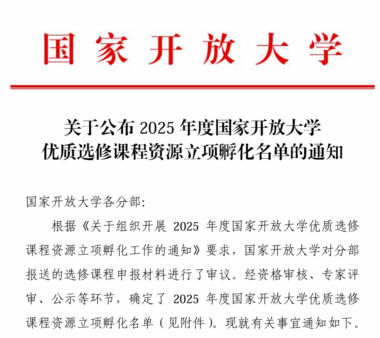喜报!武汉开大两课程入选国家开放大学优质选修课程资源立项孵化项目