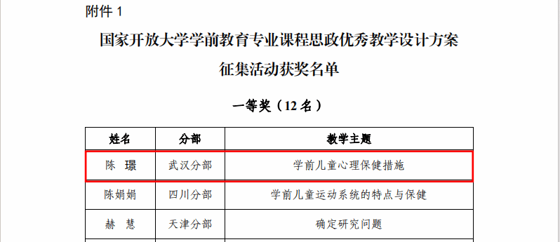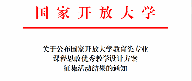 陈璟、孙博和张丽莉老师荣获国开教育类专业课程思政优秀教学设计方案一等奖