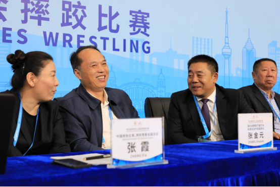 军运会摔跤比赛开赛以来,场面火爆,精彩连连,得到社会各界的高度关注和大力支持。湖北省教育厅党组书记、厅长陶宏,省教育厅副厅长张金元,武汉市人民政府副市长刘子清、陈邂馨,市政府副秘书长李涛,军运会执委会专职副秘书长张东风、联合督察组副组长刘新逸,团市委书记柳新,市公安局副局长方勇,东湖新技术开发区管委会副主任宋治平、明铭等各级领导来到场馆,视察摔跤比赛现场,慰问志愿者和工作人员,指导各项工作,并对摔跤赛事组织工作连连称赞。
