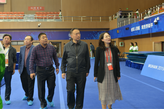 王洪波一行查看了摔跤场馆,看到工作人员正在聚精会神地进行最后阶段的调试,对我校师生全心投入的热情和有序高效的组织表示肯定。他表示,相信武汉软件工程职业学院将以出色的表现向世界呈现一次精彩的军运会摔跤比赛,展示湖北高校的实力、中国学子的风采。