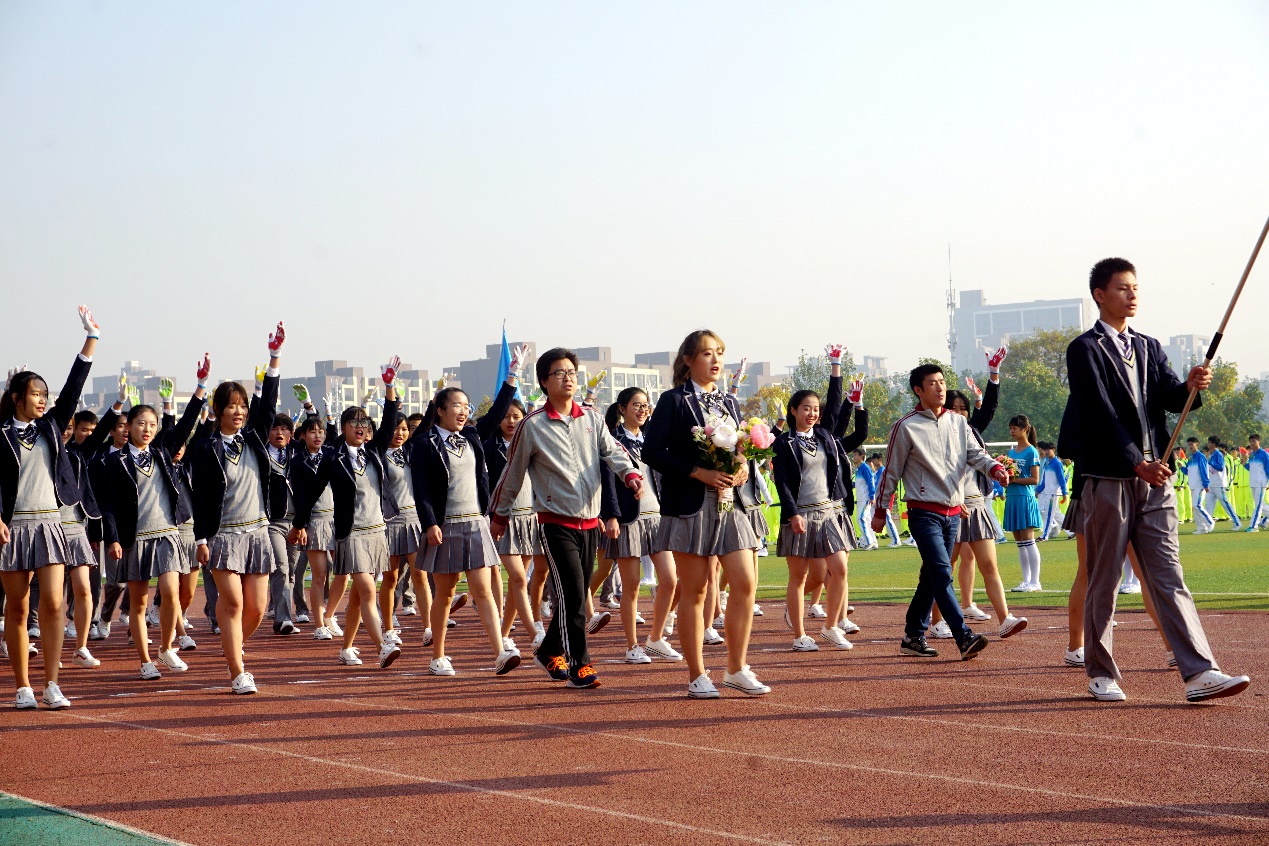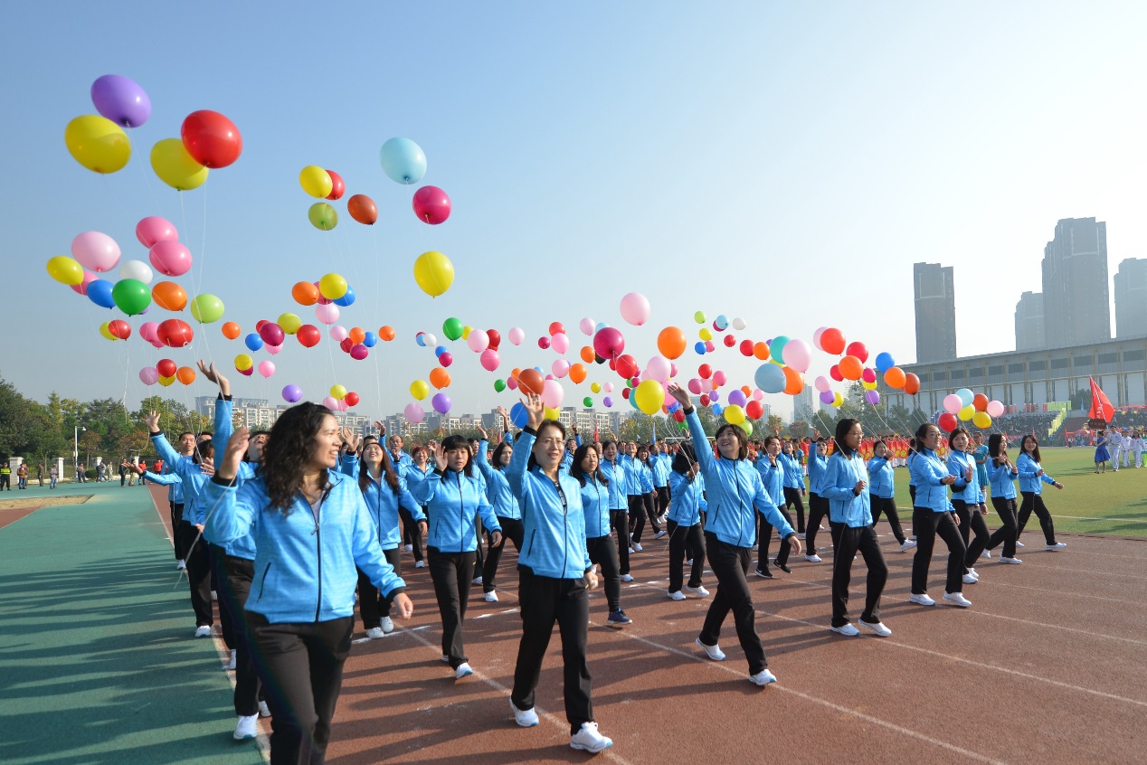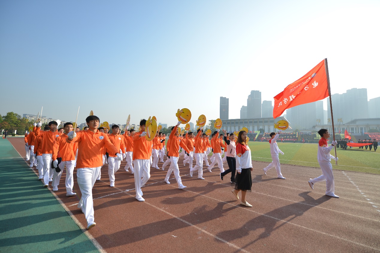 8点30分,伴随着嘹亮的《运动员进行曲》,英姿飒爽的护旗队大步向前,鲜艳夺目的红旗方队紧随其后。各具特色的鲜花队、志愿者队、各学院代表队、教职工代表队、裁判员代表队伍依次入场。各方队服装整齐,神采奕奕,以别具匠心的方式展现我校师生的风采。计算机学院 “纯爷们儿”方队口号震天,机械工程学院方队派出“机器人”,电子工程学院方队举起点赞牌,汽车工程学院方队亮出朵朵向日葵,环化学院方队举起“美丽中国”牌,商学院方队摆出“五朵金花”造型,艺术与传媒学院方队挥手展示别致的彩色手套,体育学院方队挺拔矫健,吸睛无数。多个方队放飞彩色气球,将场上的欢呼引上云霄。