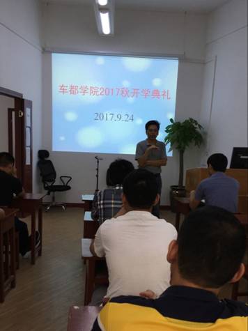 (文/张晓莹 图/范天胤)9月24日上午,武汉电大车都学院2017年秋季开学典礼在车都学院多媒体教室举行。院长涂明星、副院长陈秋劲、车都学院全体教职工及各年级学生参加典礼。典礼由涂明星院长主持。
