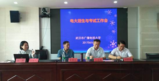 (通讯员:曾蘅)6月16日上午,武汉电大招生与考试工作会在市校综合楼8楼会议室召开。副校长王路群、教务处处长李萍、副处长李维六及23所分校(教学点)的校领导和招生、考务部门负责人共60余人参加了会议。