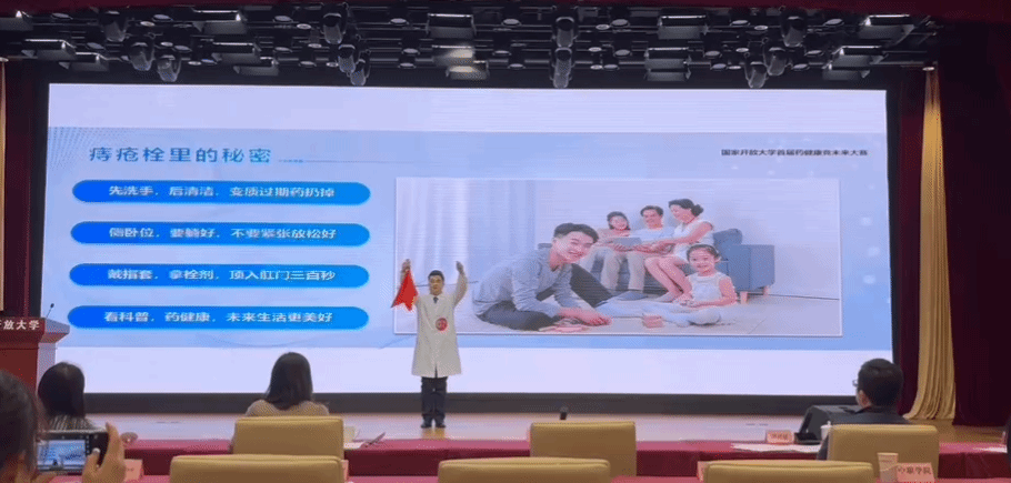 (通讯员 漆轶娜)11月28日,由国家开放大学举办的首届“药健康 竞未来”药学科普大赛现场赛在国家开放大学五棵松校区举行。我校24级秋药学本科大一学子杨绪鑫的科普作品——《痔疮栓里的秘密》荣获此次科普大赛中一等奖第一名,徐超、熊海燕老师被国家开放大学评为“优秀指导教师”。
