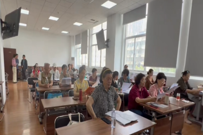 银龄志愿者在大厅为新学员提供指引服务,签到区精心准备了活动安排、课程表。学校开放了热门课程教室,包括健康生活类的太极拳、中医疼痛调理,艺术兴趣类的声乐合唱、中国舞和非洲鼓等课程。老师们热情邀请新学员加入学习,在音乐中翩翩起舞,在非洲鼓声中感受原始律动,现场气氛十分活跃。