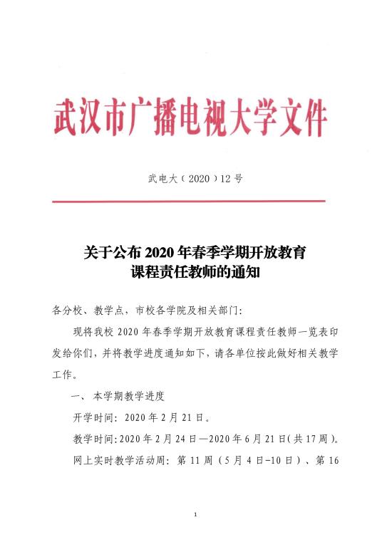 附件 : 武汉市广播电视大学2020年春季学期开放教育课程责任教师一览表.xlsx