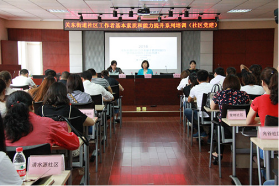 为推进综治联系点项目落实,6月20日上午,由我院主办的关东街道社区工作者基本素质和能力提升系列培训第一期社区党建培训在关东街道三楼会议室顺利开班。此次培训邀请了我校马克思主义学院肖国香、王军梅两位老师讲党课,关东街道39名入党积极分子和44名社区及改制公司的党务工作者参加了培训。