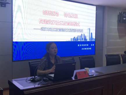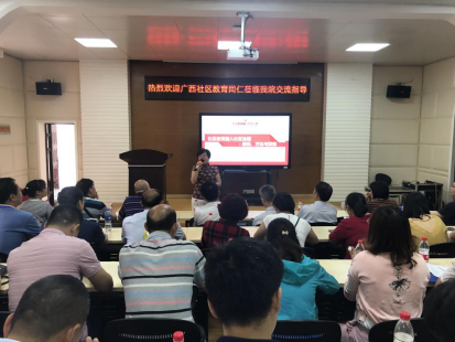 开班典礼结束后,武汉市教育局职成教处副处长王峥做了题为《创新驱动 特色发展 构建武汉社区教育新模式》的主题报告。她从工作格局、责任意识、提升社区教育基础办学能力、打造高质量社区教育队伍、提升社区教育内涵、探索创新发展,挖掘社区教育潜力等多个方面介绍了武汉市社区教育的建设发展探索与实践,并重点介绍了武汉市社区教育在开展老年教育、家庭教育、社区教育融入社会治理、乡村振兴视角下农村(成人)教育的探索,面向广西壮族自治区14个地级市的社区教育同仁们介绍了武汉市社区教育的经验、做法和成果。