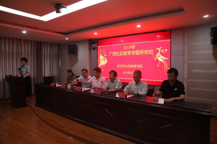 (通讯员:杜正沛)5月28日上午9时,“2019年广西社区教育专题研修班”在市社区教育学院开班。广西广播电视大学副校长董塔健,武汉市社区教育学院党委副书记郭友鹏,广西广播电视大学社区教育学院院长黄河,武汉市教育局职成教处处长李万平、副处长王峥,武汉市社区教育学院办公室主任朱智泉出席了开班典礼。71名广西壮族自治区社区教育管理干部参加了开班典礼。本次研修班由武汉市社区教育学院、广西广播电视大学联合举办,旨在通过研修进一步展示我市社区教育工作成果,提升广西地区社区教育骨干的理论素养、管理水平、专业技能与个人修养,提升社区教育的内涵,促进武汉、广西两地社区教育区域间的横向交流,相互学习。