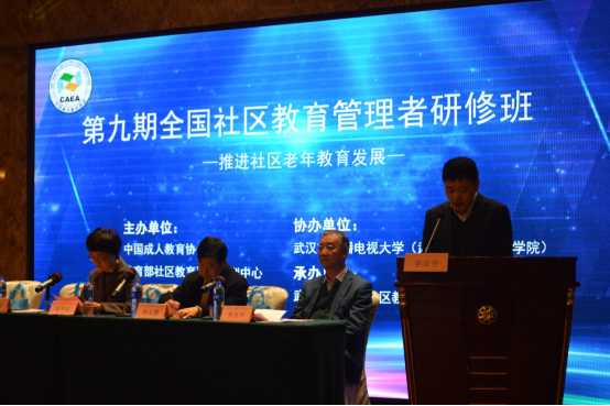 11月25日至29日,第九期全国社区教育管理者专题研修班在武汉顺利举行。25日上午,研修班举办了简短而隆重的开班仪式,中国成人教育协会副会长包华影,湖北省教育厅职成教处副处长刘长军、武汉市广播电视大学(武汉软件工程职业学院)纪委书记郭友鹏、湖北省社区教育指导中心主任范正薇、武汉市教育局职成教处处长李万平、武汉市职业教育与成人教育协会会长陈浩川、江岸区副区长蒋志耕、江岸区教育局局长张念强以及市教育局职成教处、江岸区教育局相关工作分管负责人出席了开班仪式,近300名全国及武汉市各区的社区教育工作者参加了培训。开班仪式由中国成人教育协会网络教育中心副主任李荣华主持。
