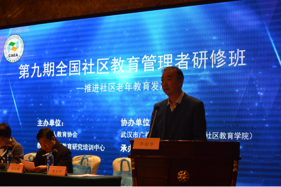 江岸区副区长蒋志耕首先致辞,他对代表武汉市江岸区向前来参加本次研修培训的专家和学员表示欢迎,并向大家介绍了江岸区的政治、经济、历史、文化等基本情况,以及江岸区在社区老年教育工作所取得的工作成效。