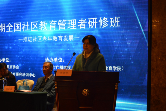 中国成人教育协会副会长包华影充分肯定了武汉市在社区教育方面取得的成绩。她指出,武汉市近几年在社区教育与老年教育工作方面进行了积极研究和有效探索,取得了长足发展,且成效显著。国家级社区教育实验区、示范区覆盖率达到61.8%,社区教育工作已经处于全国一流方阵。她强调,老年教育是我国教育事业和老龄事业的重要组成部分,是社区教育的重要内容。我们要高度重视老年教育工作,通过逐步健全老年教育法规制度,不断提升基础能力建设,进一步提升各类老年教育机构服务能力,助力老年教育再上新台阶。同时,她解读了国务院印发的《老年教育发展规划(2016--2020)》以及《国家积极应对人口老龄化中长期规划》等文件精神,明确指出了下一步老年教育工作的方向。