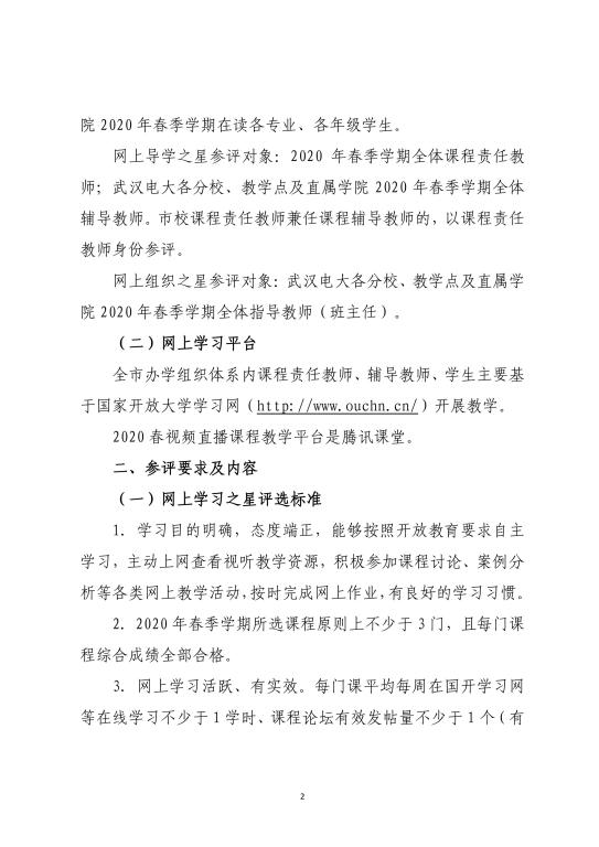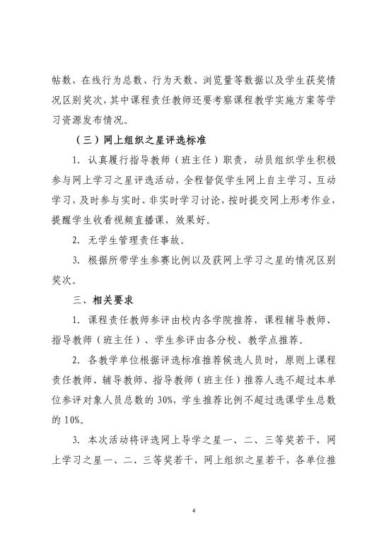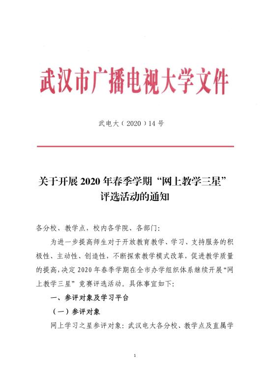 关于开展2020年春季学期“网上教学三星”评选活动的通知